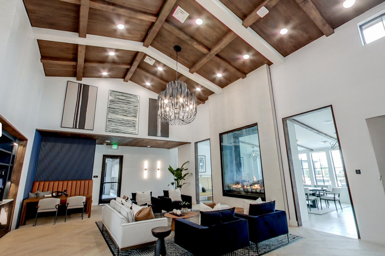 This custom chandelier not only functions as the centerpiece of the resident lounge—it defines the mood of the space. With its bold silhouette and warm illumination, it reinforces the high-end feel of the property while fostering an inviting, community-focused environment. The Aventine Littleton Apartments project exemplifies Ideoli’s ability to design bespoke lighting that balances architecture, ambiance, and modern lifestyle.